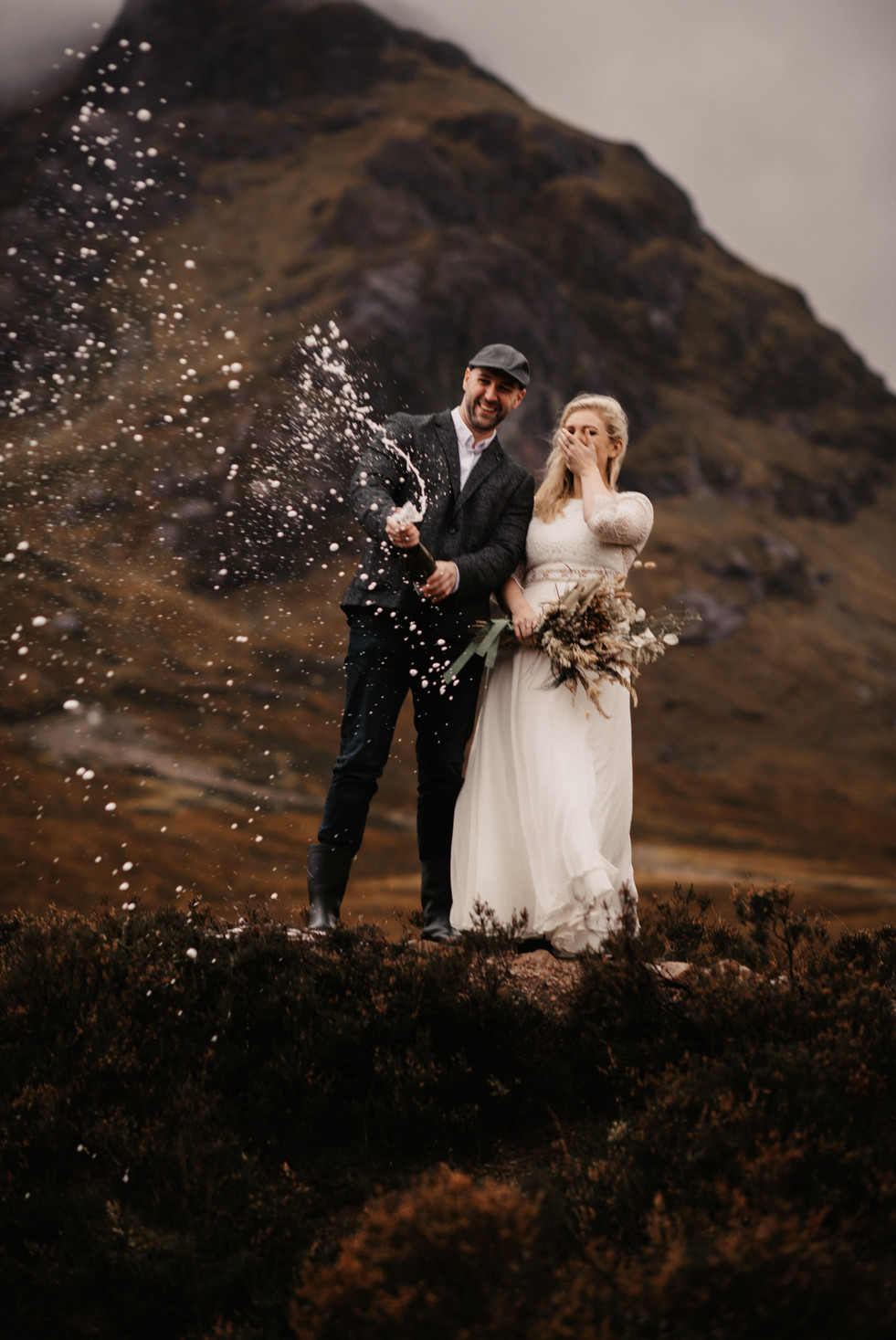 We climbed to the top of a (very slippery) Scottish mountain side where Michelle & John read their personalised vows to each other in the pouring rain with beautiful stationery designed by White Cottage Weddings. We picked a secluded location in Glencoe, Scotland away from tourists and hikers to create an intimate place to say ‘I do’.